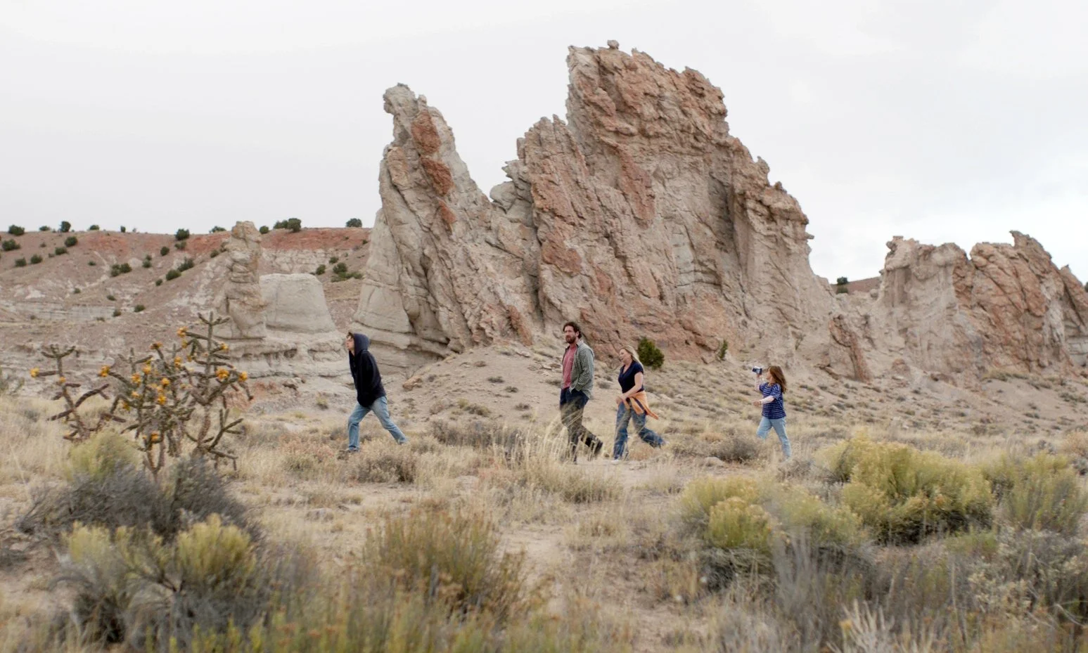 I grew up taking family road trips from Texas to New Mexico. I still remember the hours spent as a kid staring out the car window, watching as the Texas plains slowly gave way to the desert, and how the bright sunlight would shift into a soft pink horizon. I chose this landscape because in the vastness of a desert, there is often nowhere else to look but at the people beside you. It’s in this open space that Sadie’s family is forced to confront Colton’s struggle and see the truth of what he’s navigating.