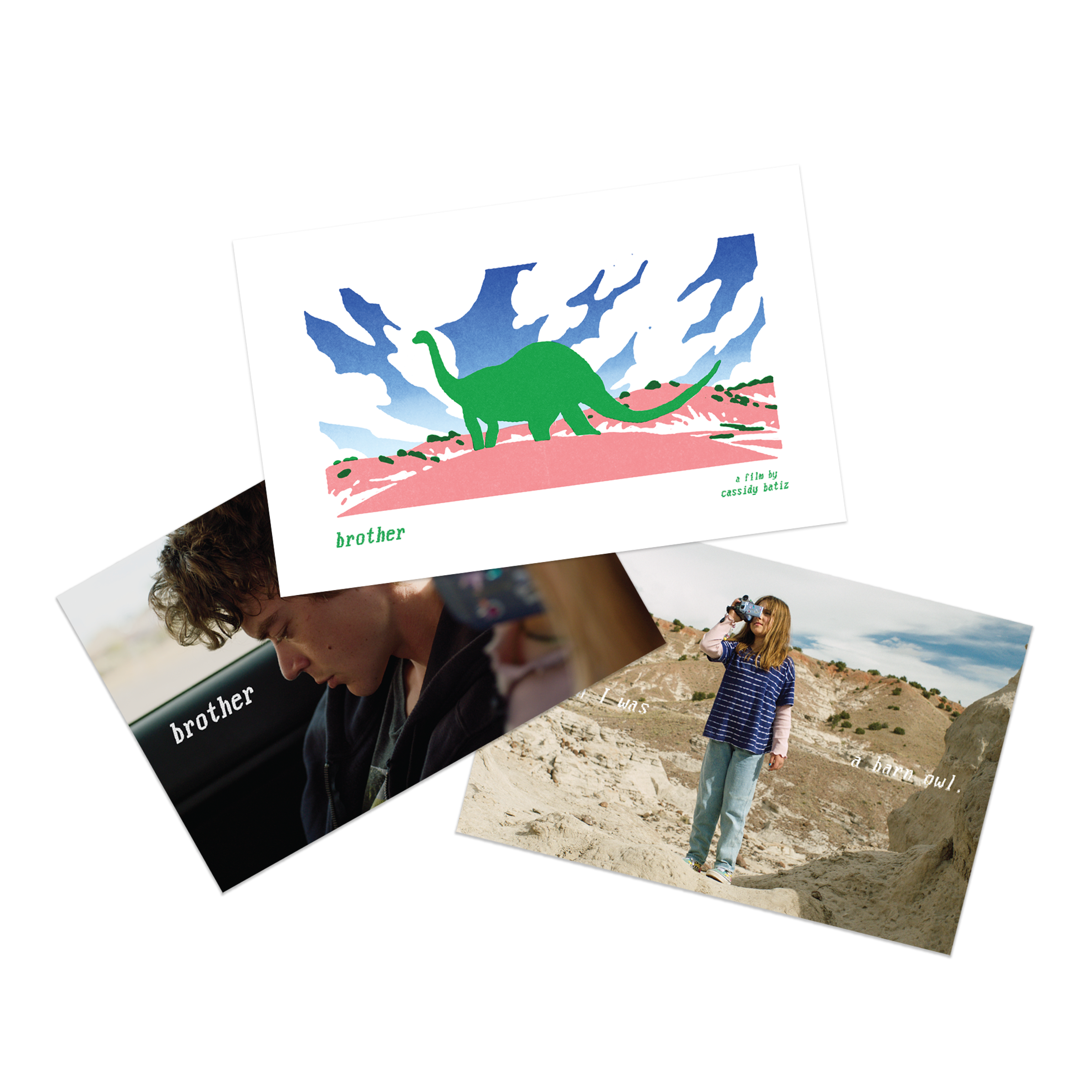 You’ll receive all the Brother merch (Sticker, Tote Bag, Hat), as well as a set of three postcards. One features a custom risograph printed illustration by my dear friend Dan Dittrich, with the full set lovingly designed by Andre Shen.