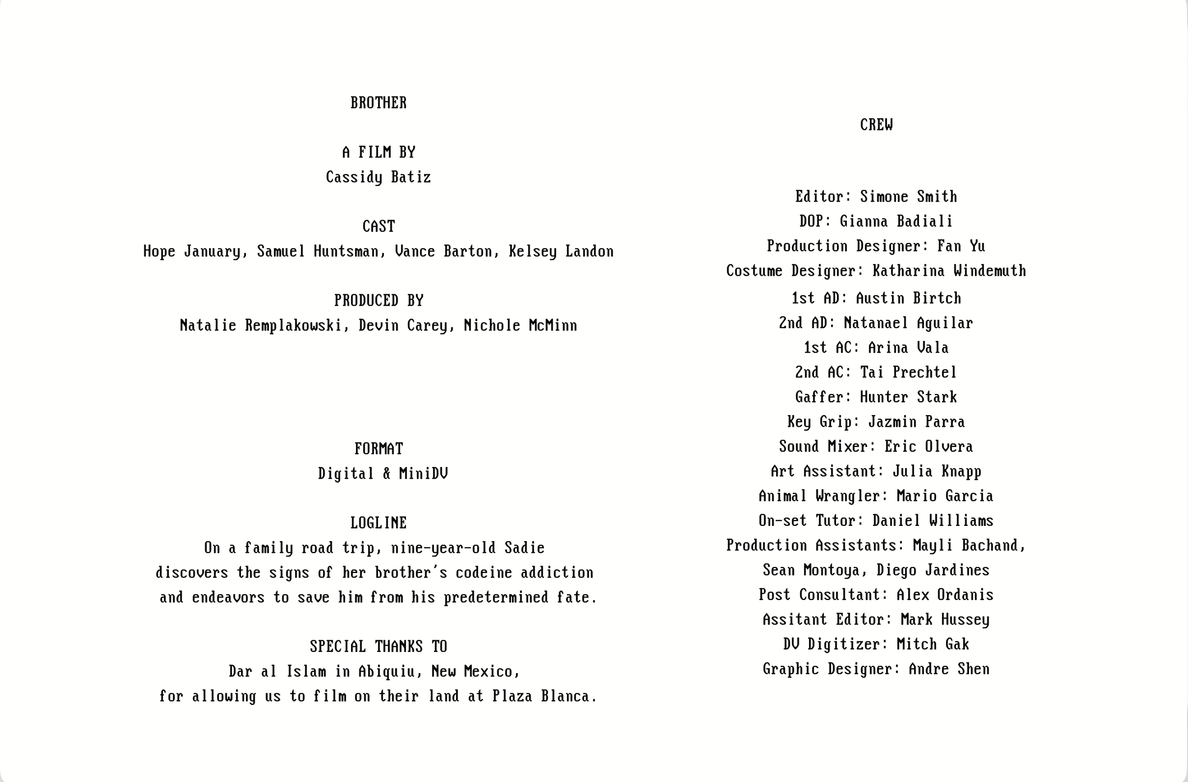 +6 items included: Brother Sticker, Advanced Copy of the Film, ‘Thank You’ Credit, Brother Tote, Brother Postcards, Invite to Screening & Party with Cast & Crew (NYC)