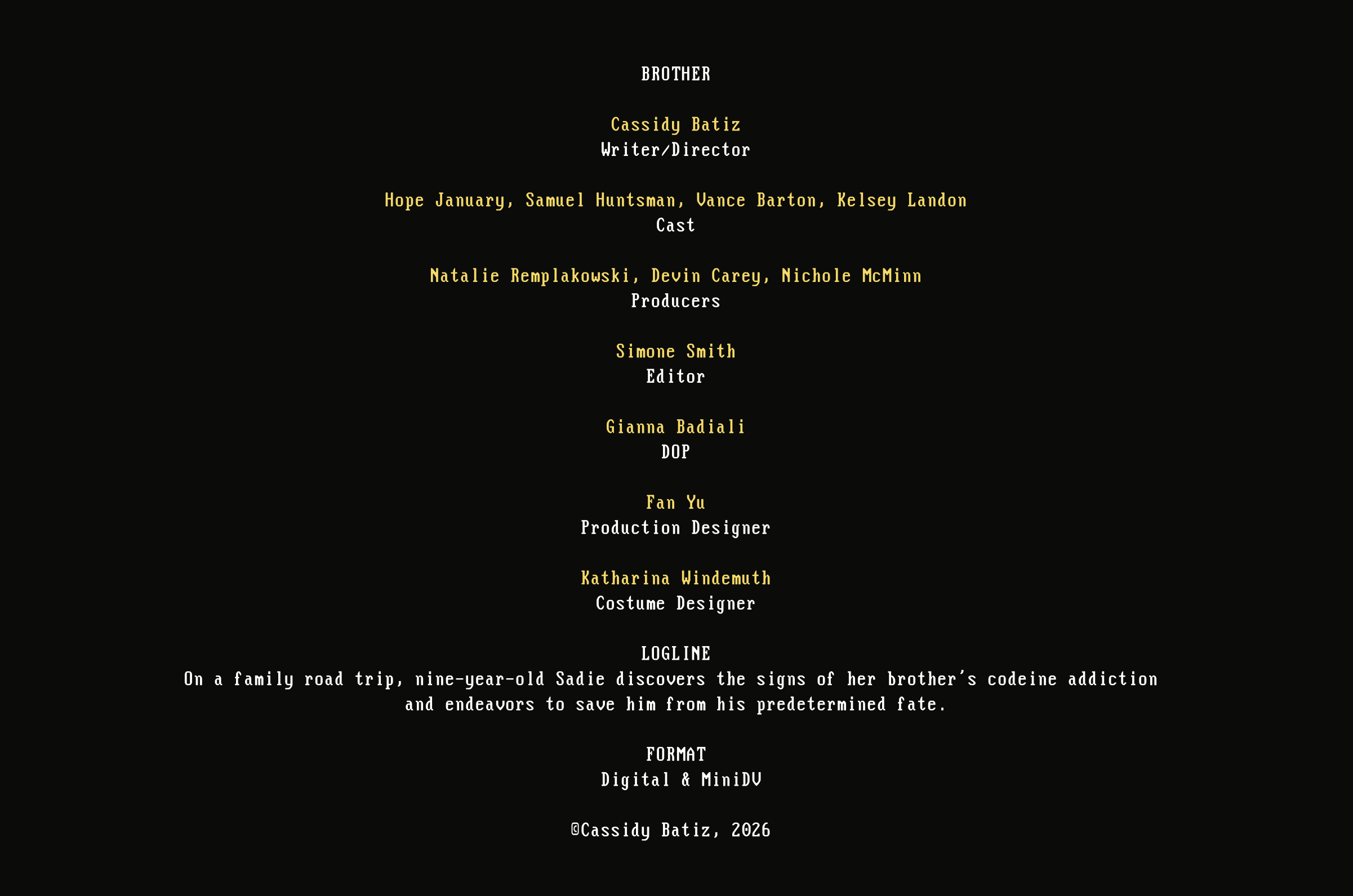 You’re truly our hero. As an Executive Producer, you’ll receive an on-screen credit, IMDb listing, recognition in official press materials, a private advance screening, and an intimate behind-the-scenes conversation with the filmmakers about the making of Brother.